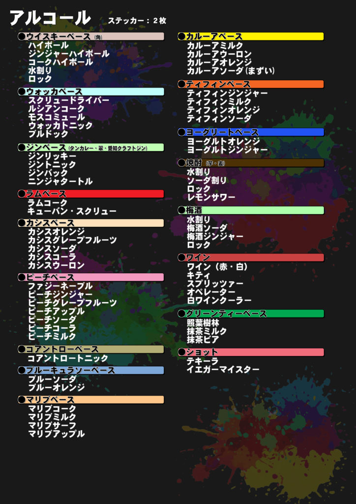 充実したメニューをご用意。アルコール、ノンアルコール(¥600〜)、フード(¥800〜)など豊富な選択肢。お酒が飲めない方も安心。外部からの持ち込みも相談可能です。