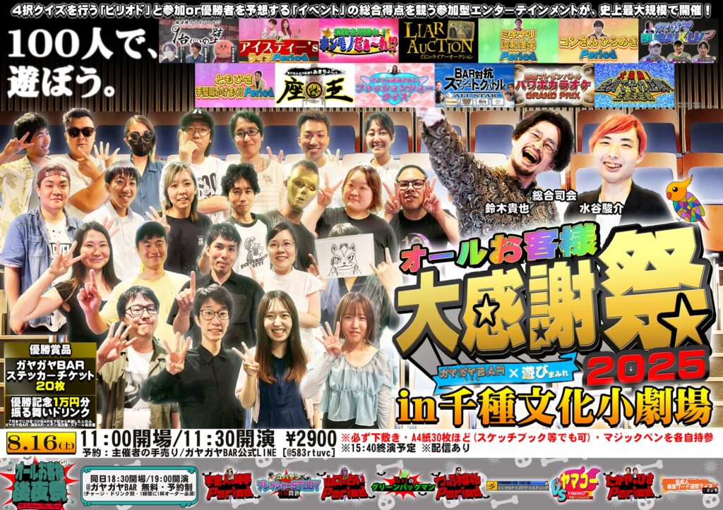 11:30〜 ¥2900 みんなでクイズやゲームや大喜利!史上最大の参加型イベント!※15:40終演予定