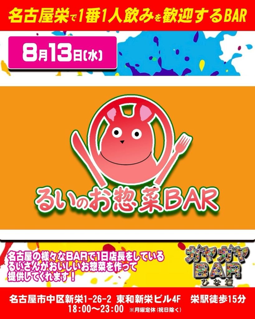 【8/13】常連さんの美味しいご飯を楽しもう!in 名古屋栄で1番1人飲みを歓迎するガヤガヤBAR