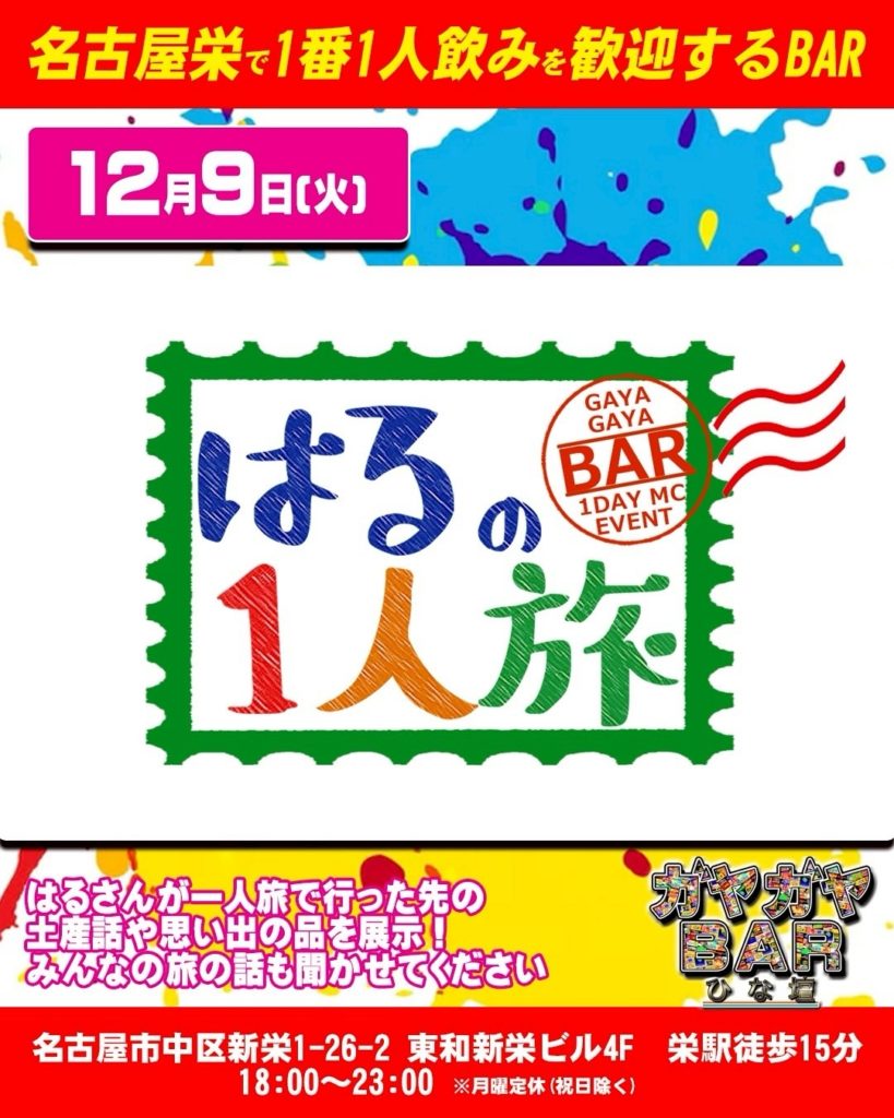 はるの一人旅BARin名古屋栄で一番1人のみを歓迎するガヤガヤBAR