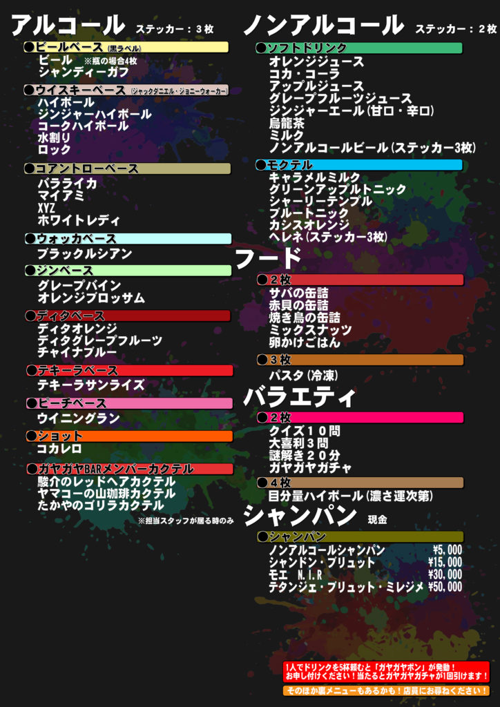 〇ガヤガヤBARメンバーカクテル*担当スタッフが居るときのみ